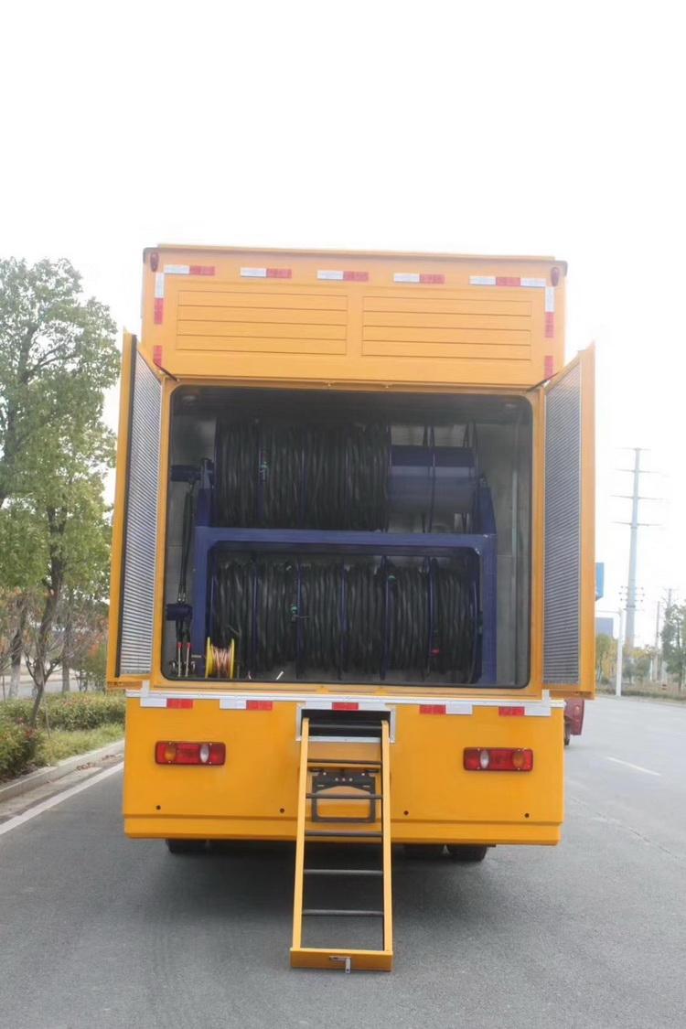 尾氣排放消聲系統(tǒng)、照明系統(tǒng)、液壓支撐系統(tǒng)、線纜絞盤及工具器材艙等組成。